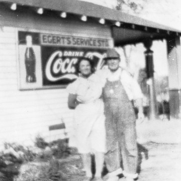 Henry and Emma Egert stand beside their service station, located five miles north of Eskridge on the corner of K-4 Highway and North Branch Road. Photo courtesy Emmett and Carolyn Burleson.