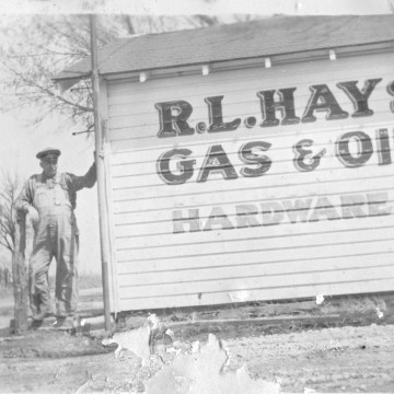 R.L. Hayes stands next to his store and station located on Southwest 21st Street, just east of Auburn Road. Photo courtesy Dorothy Tholen.
