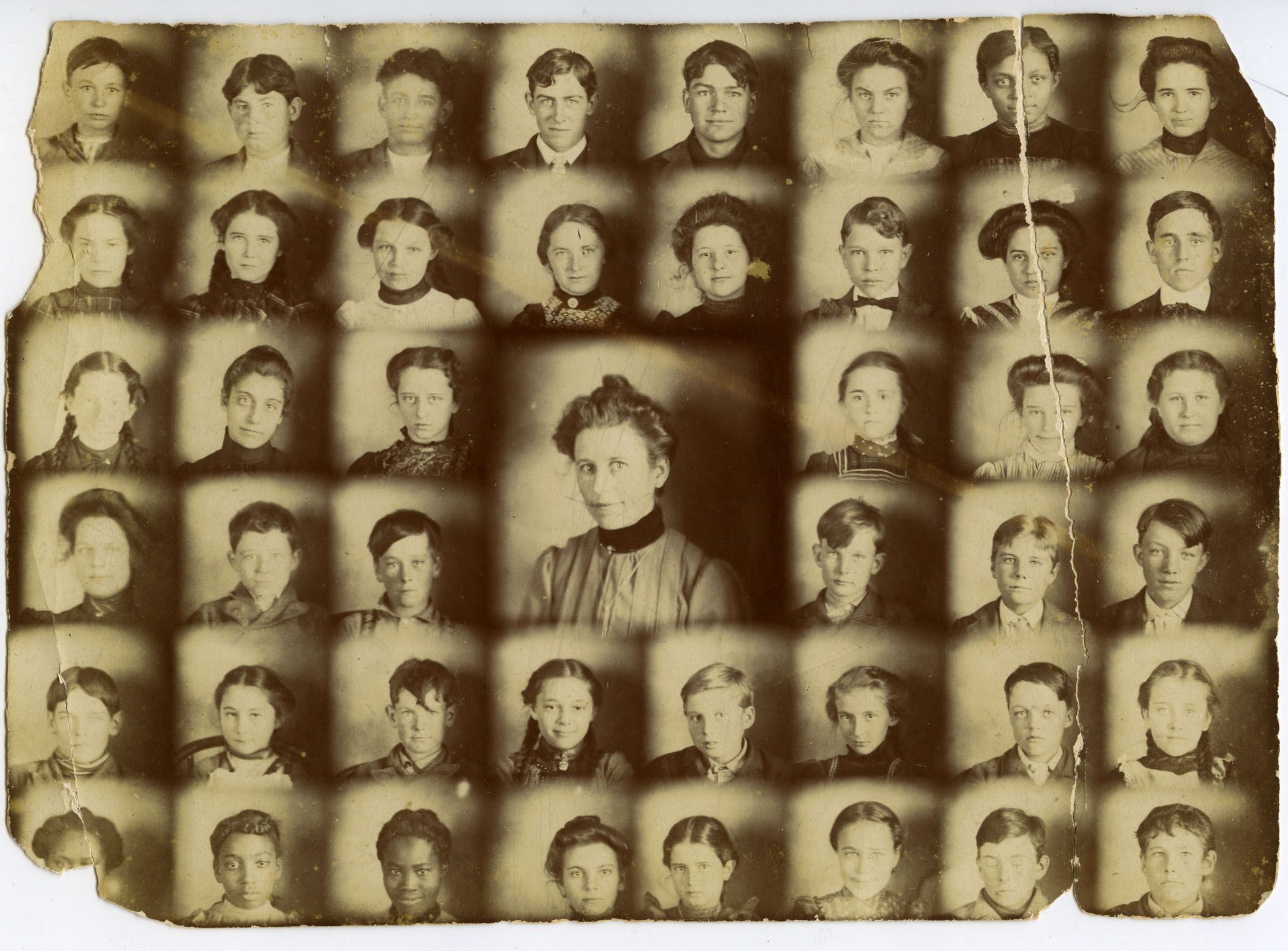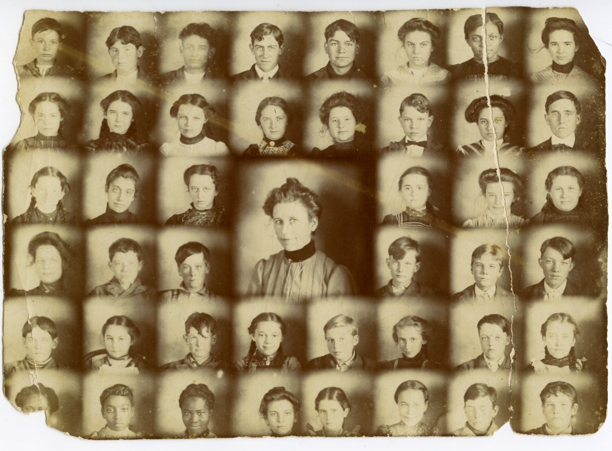 Students and instructor at the Eskridge Public School, circa 1905, including students in the 5th, 6th, and 7th grades.