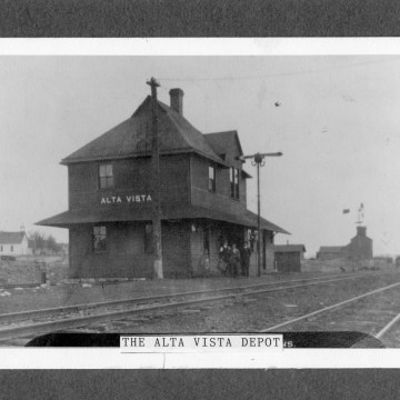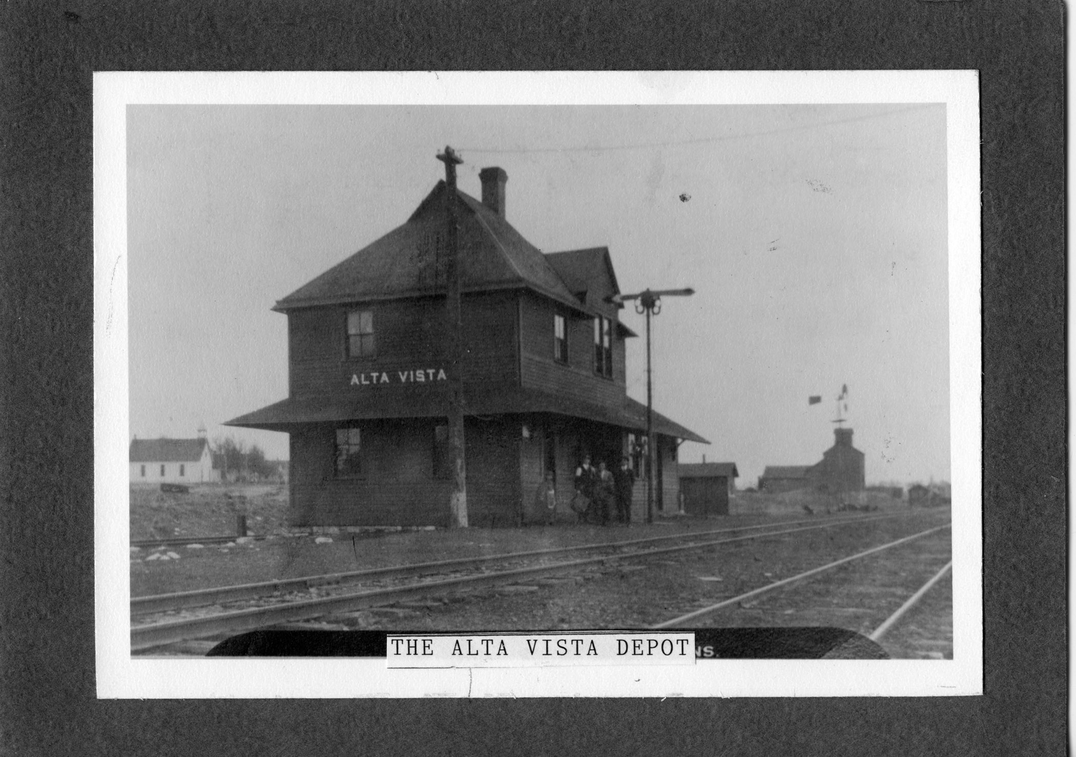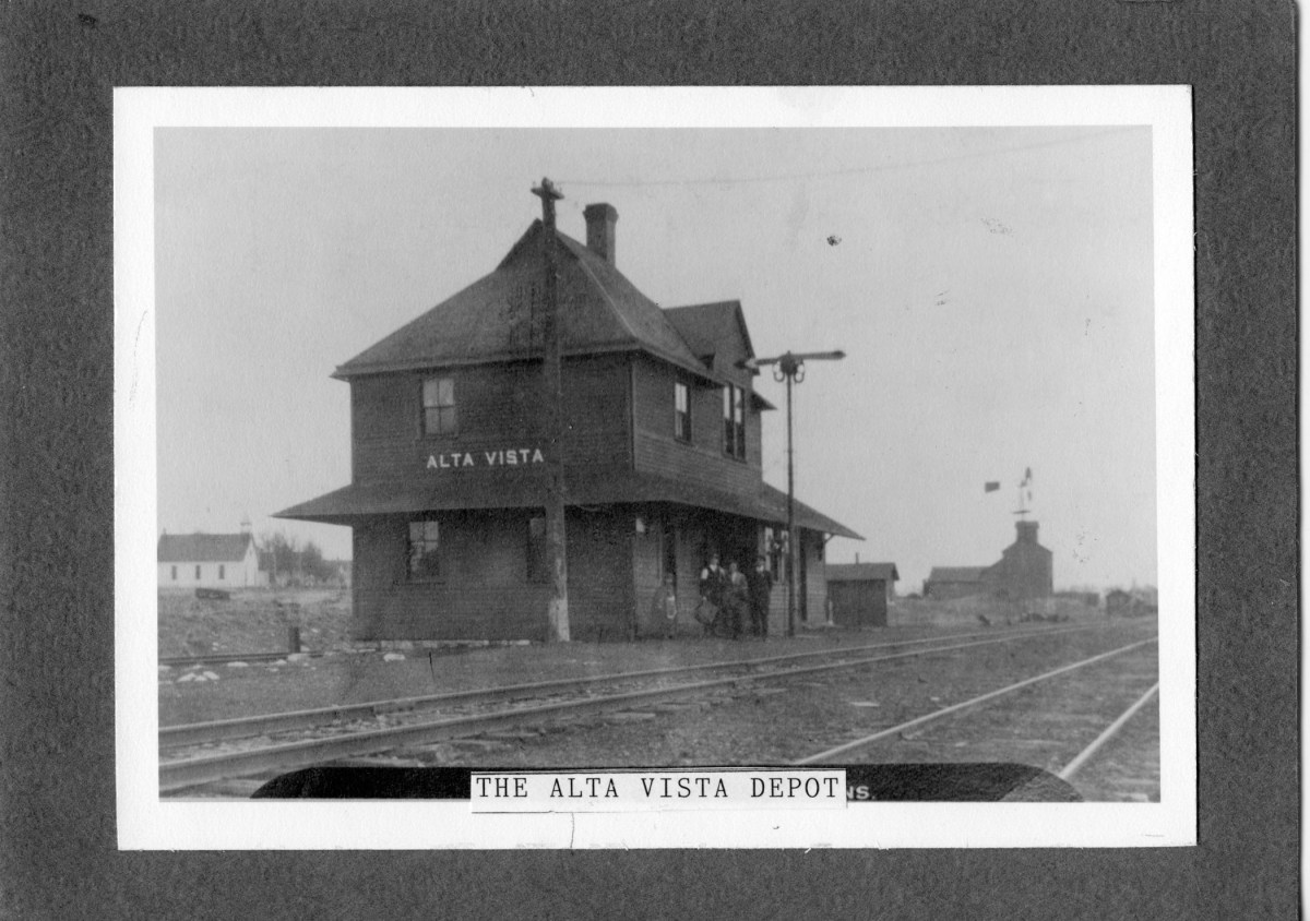 This exterior view of the Rock Island depot at Alta Vista dates from about 1900. This was the original two-story depot built when the railroad was constructed in 1887.