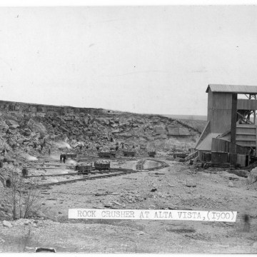 This real photo postcard of the rock crusher at Alta Vista dates from about 1910.
