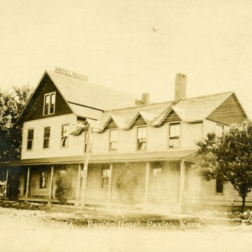 The Paxico Hotel, located at 201 Newbury in Paxico, was originally located mile north in the town of Newbury but was moved a mile south to the new town of Paxcio. This real photo postcard dates from about 1910. Photo courtesy Greg Hoots