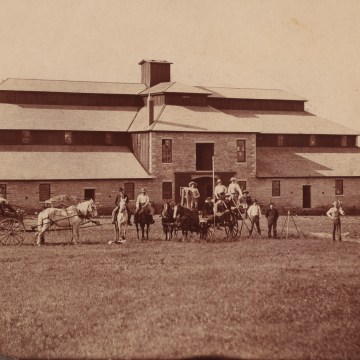 J.P. Wiser’s expansive cattle ranch, located in southern Wabaunsee County was managed by Wiser’s son, Harlow Wiser. In this view, from around 1900, a team of railroad surveyors are visible in the foreground. Notice that the windmill which sat atop the barn had been removed by this time. Photo Courtesy Ellen Coffman.