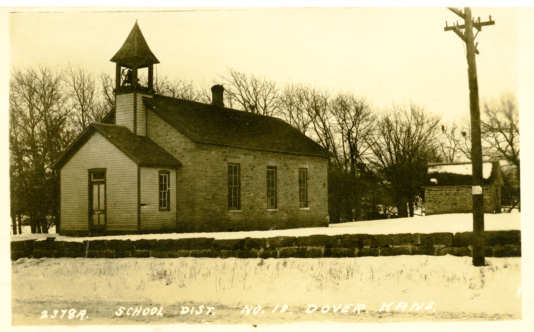 The old District 15 school at Dover, Kansas was photographed for this real photo postcard, circa 1910. Photo Courtesy Greg Hoots.