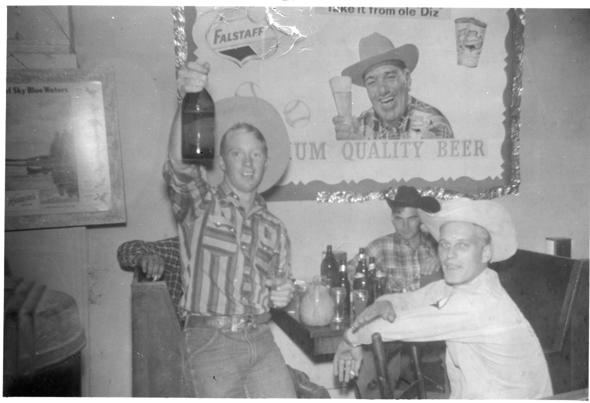 These Flint Hills cowboys stop for a small celebration after a successful rodeo, circa 1959. Dale “Little Red” Wilson, left was known to be a great storyteller, and a second, unidentified cowboy, center, and Ron Pletcher appear to be enjoying the tale. Photo courtesy Shirley Pletcher.