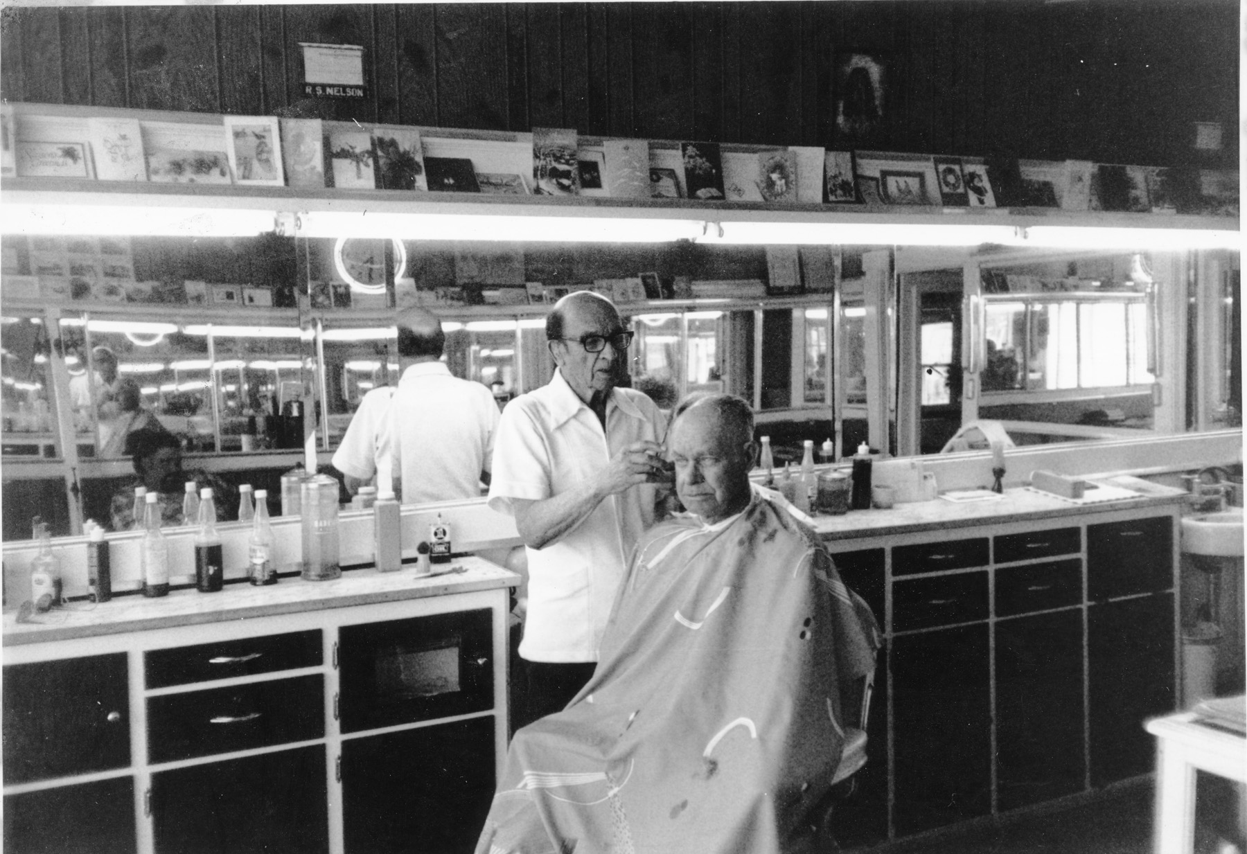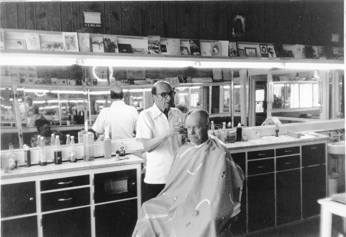 Bat Nelson gives a customer a haircut at Nelson’s Alta Vista barbershop in this view from the 1970s.