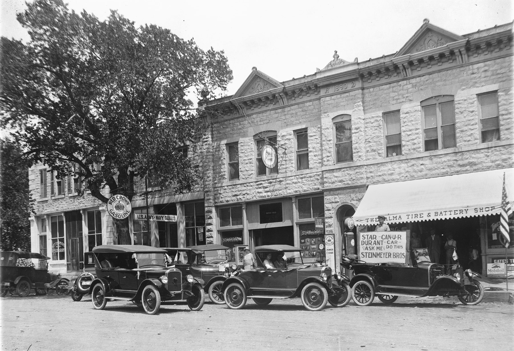 The Steinmeyer brothers operated a Durant and a Star car dealership and Alma Tire and Battery in Alma’s Palenske block during the 1920s. This is one of the Gus Meier photographs donated to the Kansas State Historical Society by Bud Wertzberger on behalf of the Meier estate. Photo courtesy Kansasmemory.org.