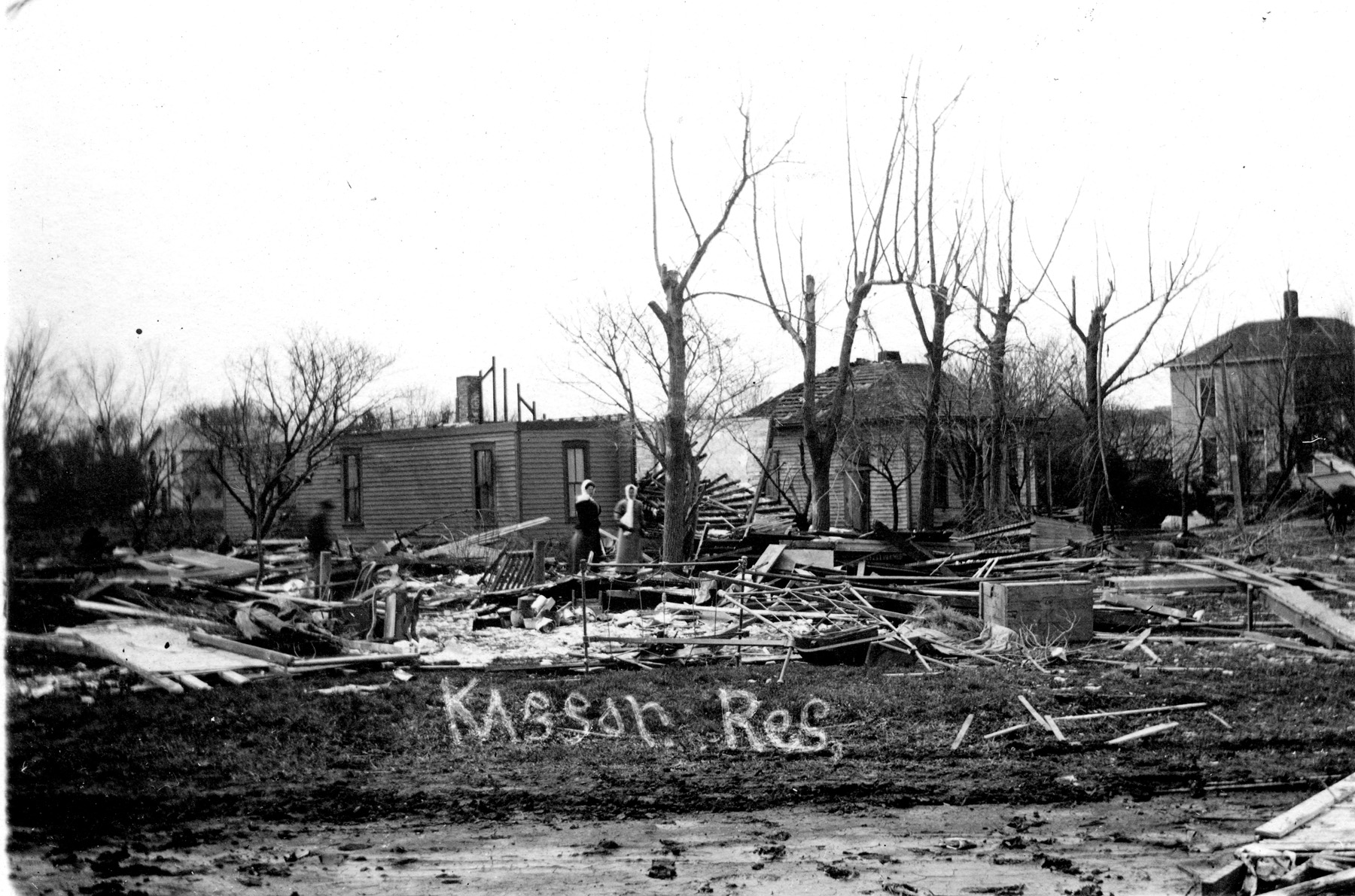 The Kasson residence in East Eskridge was destroyed by the 1911 tornado which struck the city. The Kassons were inside the home when the storm hit and were miraculously unhurt.