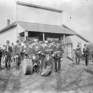 The Volland Brass Band poses in front of the Kratzer Bros. store at Volland in this Otto Kratzer photo from 1905. Bandleader Ferdinand Herrmann is seen at the far left with his clarinet. Photo courtesy Karen Durso.