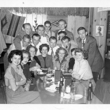 A group of Eskridge residents enjoy an evening at Cap MacKenzie’s Lake Wabaunsee Lounge. Inez Dunn is seated third from the right, and Dean is behind her, with a pipe in his mouth.