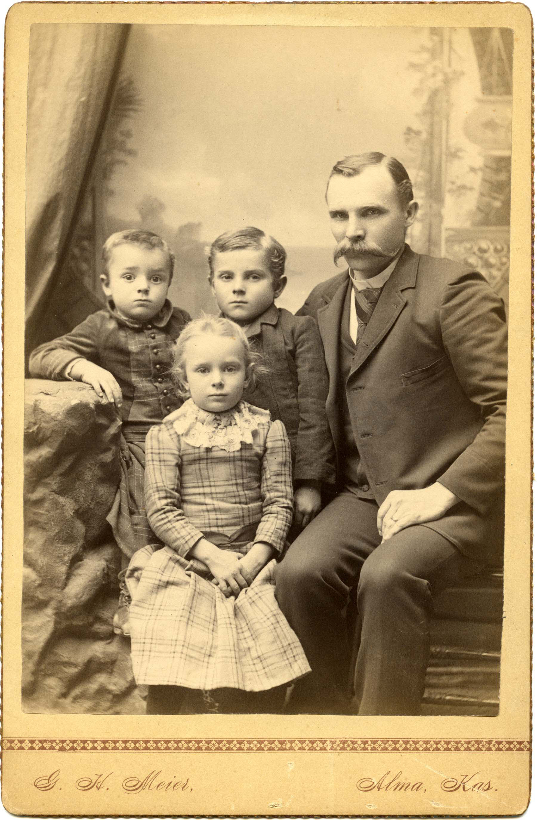 Louis Palenske poses with his children in this Gus Meier photo from about 1895. From left are Fred Palenske, Minnie Palenske, Max Palenske, and Louis Palenske. Photo courtesy the Palenske family.