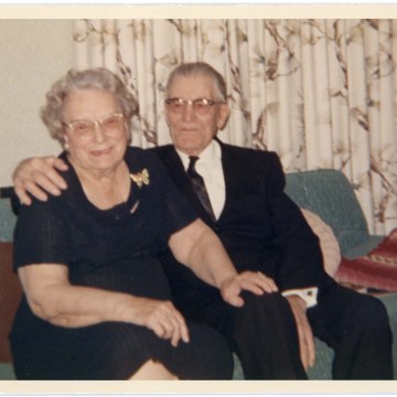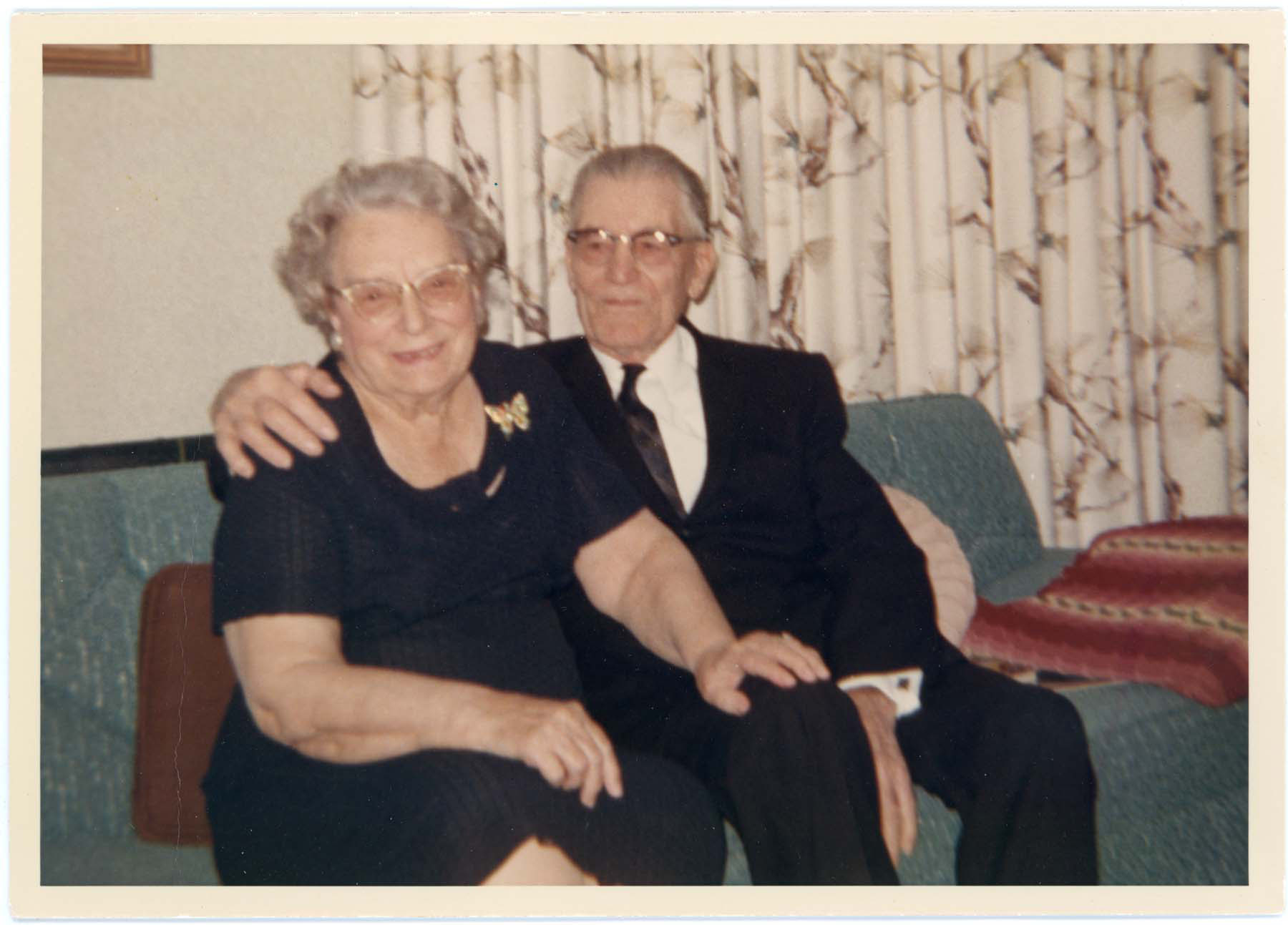 Minnie and Martin Zwanziger are seen at their Alma, Kansas home in this view, circa 1966. Photo courtesy the Palenske family.