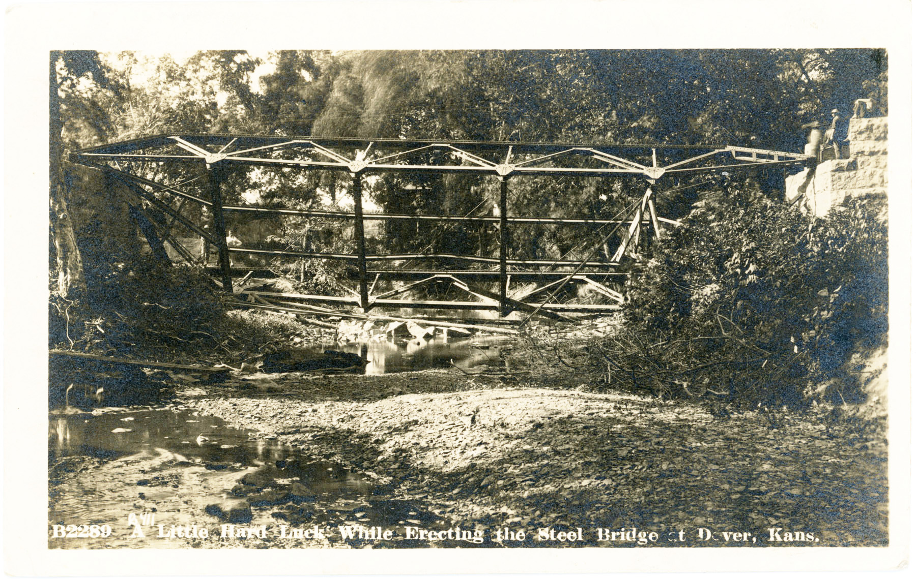 This real photo postcard of the collapse of a bridge under construction at Dover was produced by M. L. Zercher Book and Stationery, circa 1908.