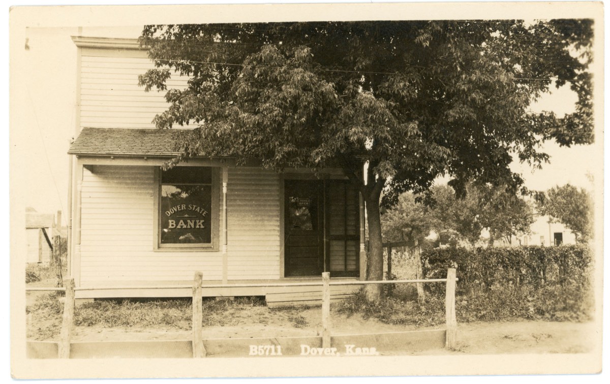 The Dover State Bank was located on S.W. 57th Street,next to Winter’s store, when this photo was taken in about 1908.