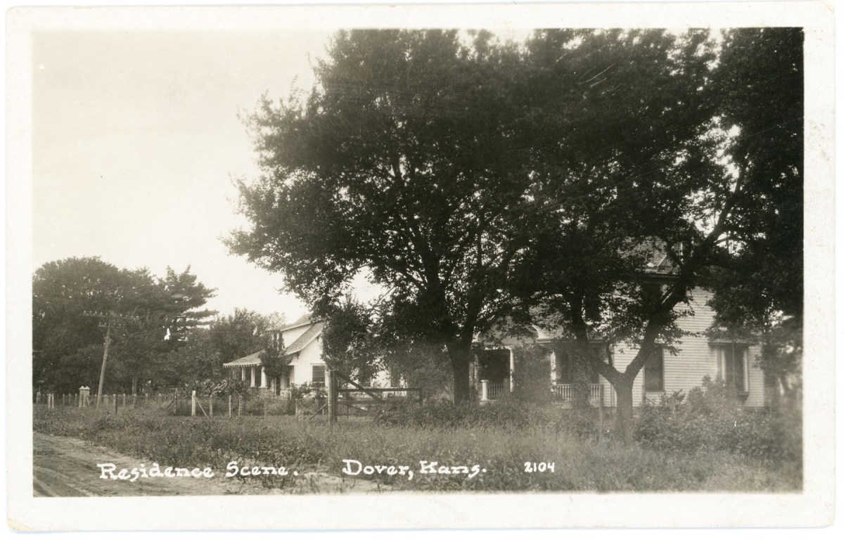 This residential view postcards shows homes on SW 57th Street in Dover, Kansas.