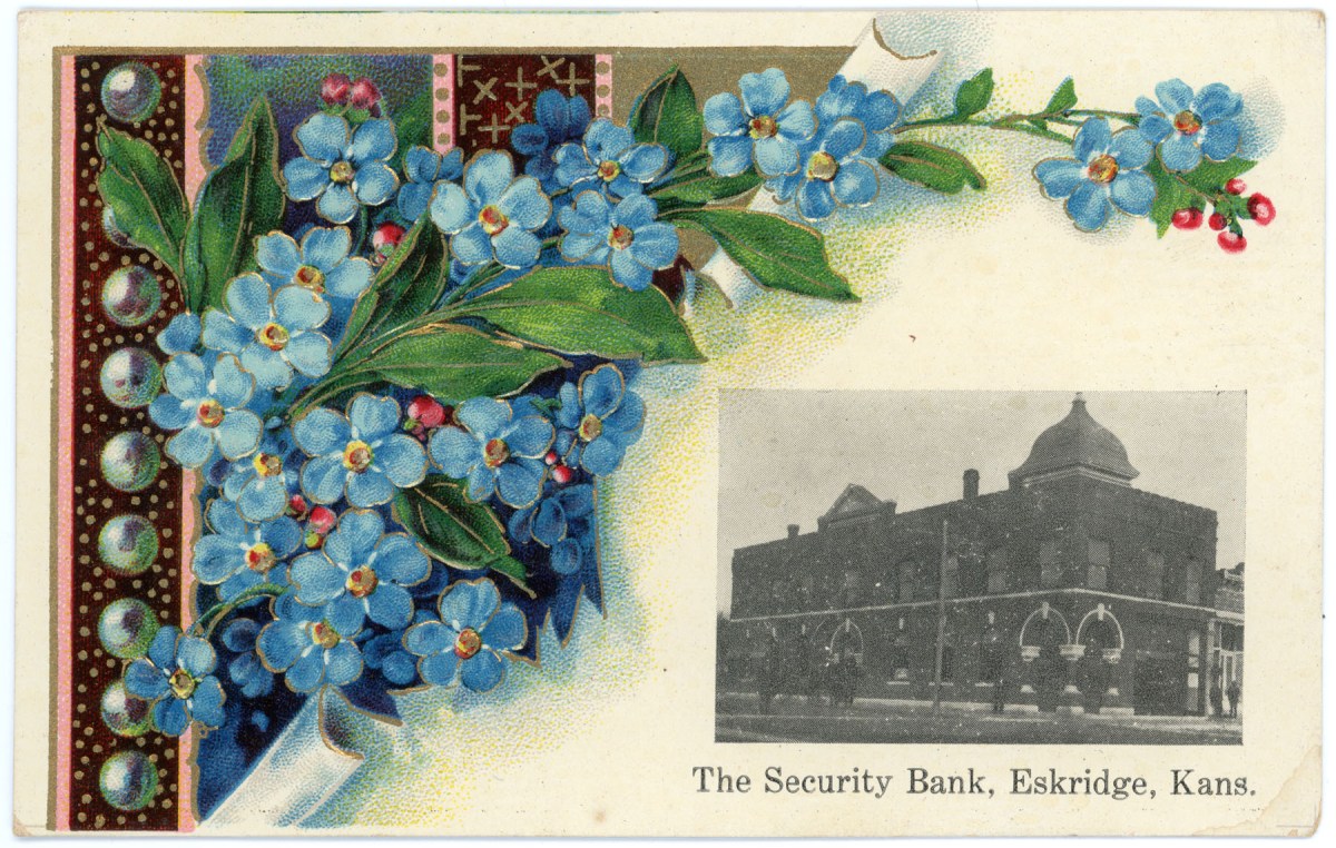 This advertising postcard was produced for the Security State Bank in Eskridge in about 1910.