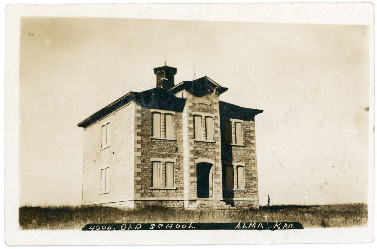 When this real photo postcard was created in about 1909, the “old school” at Alma had been closed for three years.