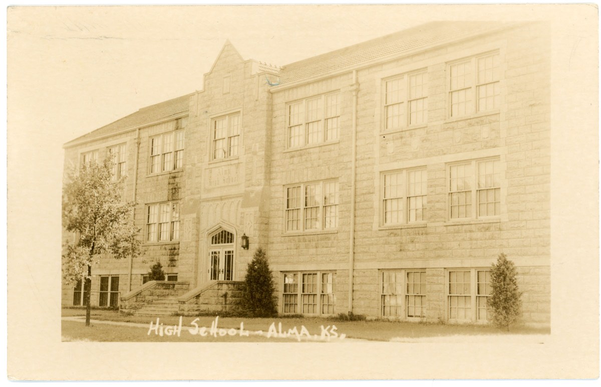 The new Alma High School, seen here, was constructed as a Works Progress Administration public works project during the Great Depression.