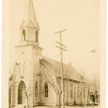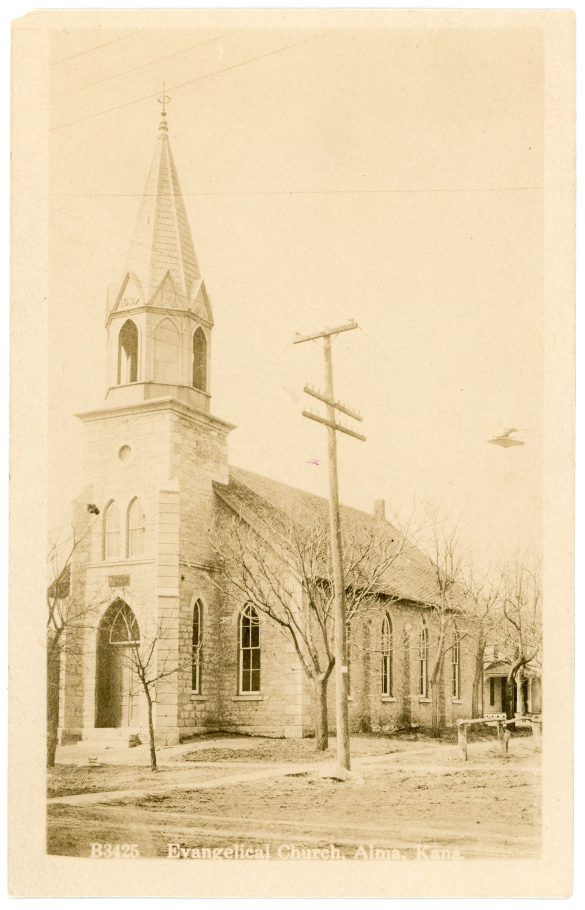 The German Evangelical Church, located at the corner of 4th and Grand in Alma, is seen in this Zercher real photo postcard bearing the postmark date of 1913.