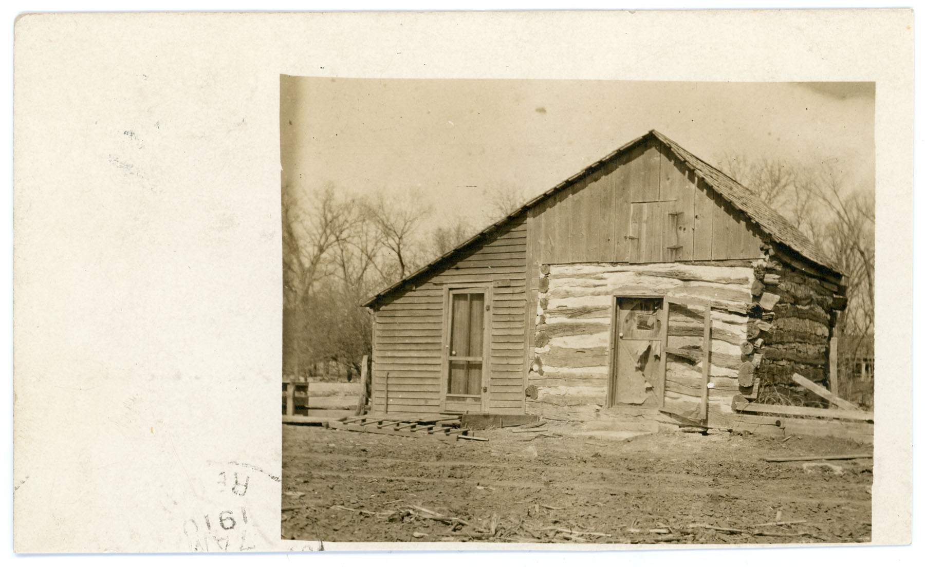 This real photo postcard shows the Henry Grimm cabin, located on the Grimm ranch at Volland. The card was sent by Volland merchant, Otto Kratzer to Henry Grimm’s son, Joe Grimm, in 1915.