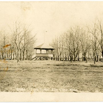 This real photo postcard by Zercher, shows a bandstand located in the City Park of Alta Vista, Kansas.