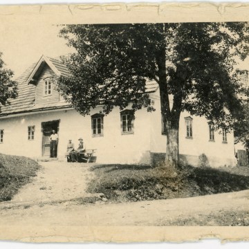 The Johann Meditz family home at Buchel is seen in this photo dated October 10, 1941. Johann’s son, Rudolf, is seen standing in the doorway while Johann is seated with Rudolf’s wife on the bench.