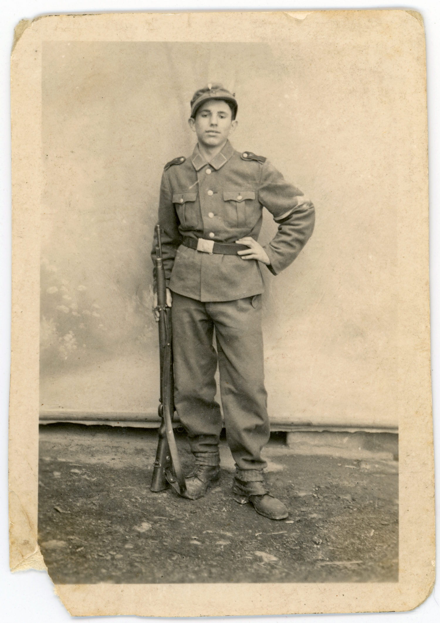 Friedrich Meditz, a member of the Mannschaft, poses for the photographer at Rann in 1943, having just turned fourteen years of age.