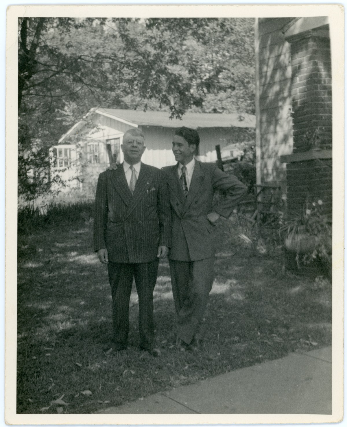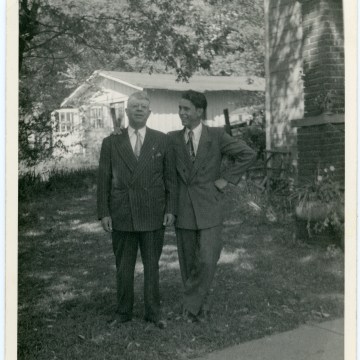 Friedrich Meditz, right, poses for the camera with an unidentified man believed to be a fellow passenger on the U.S.S. Washington, who was also traveling to Kansas City. This view is dated September 12, 1950.