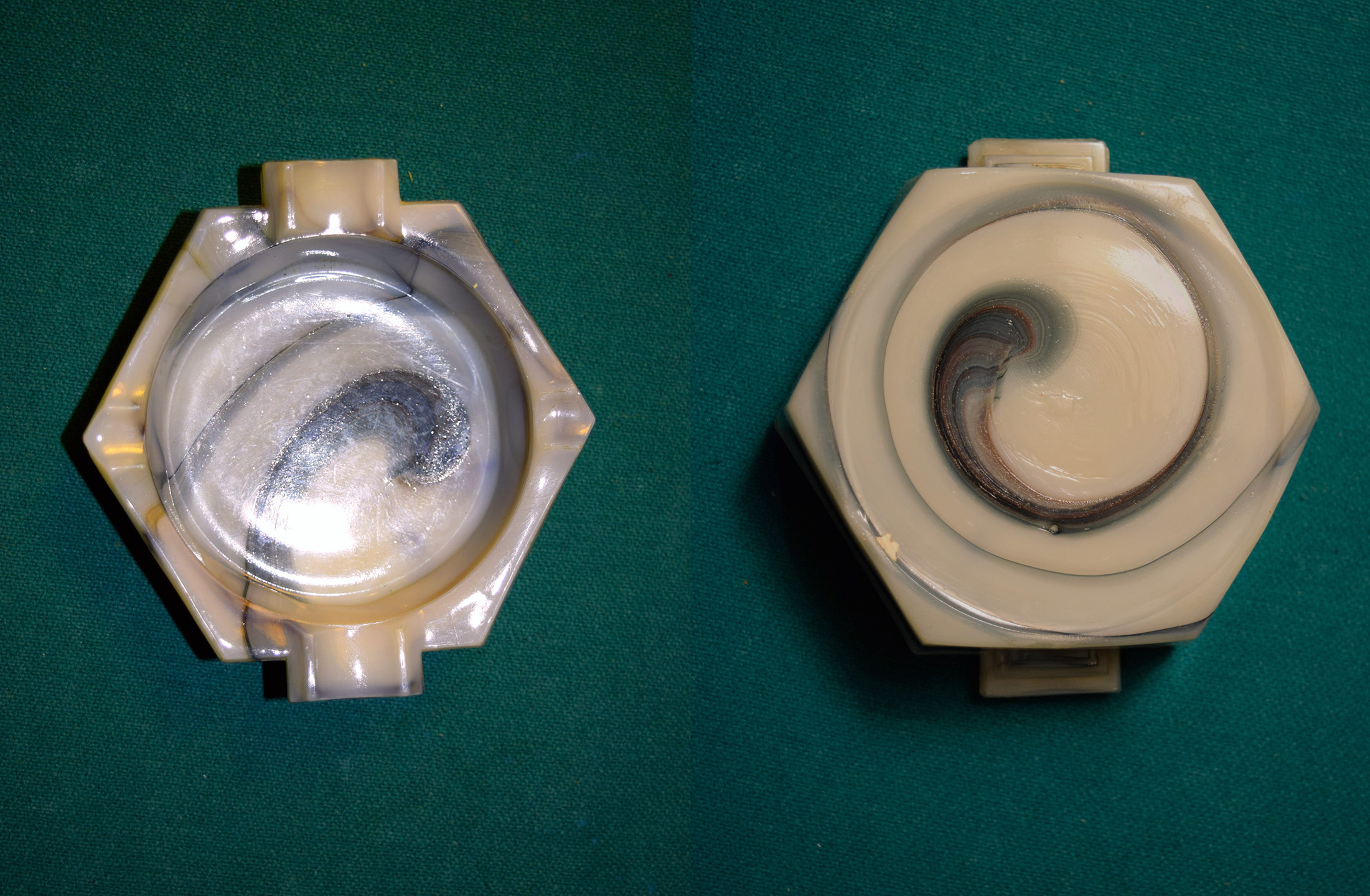 In the early 1930s the Akro Agate Company, a marble manufacturer, made this glass ashtray in their West Virginia glass plant. Courtesy Brent Crow.