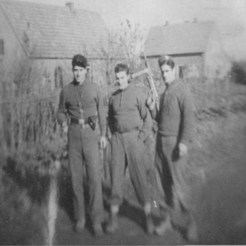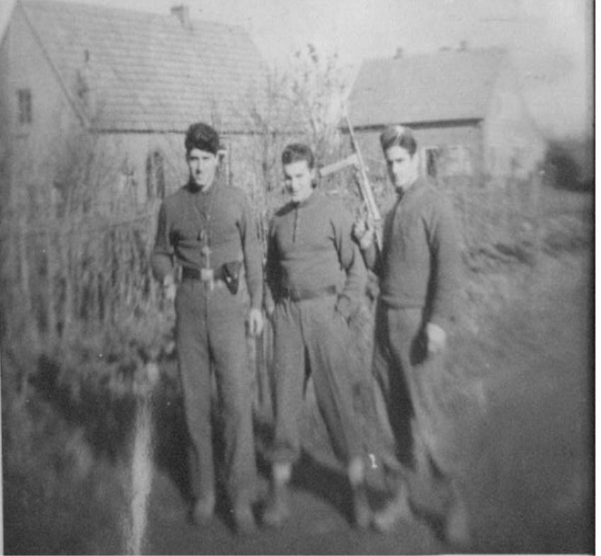 Three members of the 82nd Airborne hold an MP40 display a MP40 machine gun.