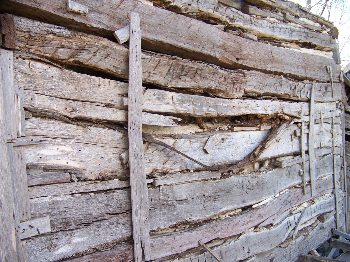 The logs of one wall of the Hensel cabin seemed remarkably intact in this 2014 photograph, while most of the cabin had collapsed by this time.