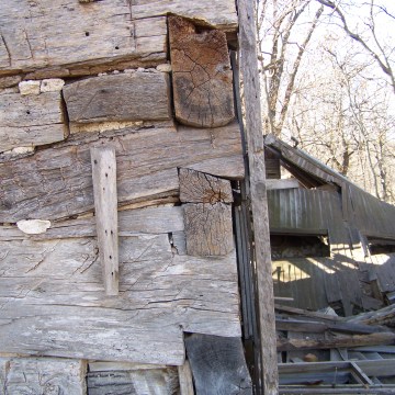 This 2014 view of the Hensel cabin shows the dove-tailing of the logs on the corners of the cabin.