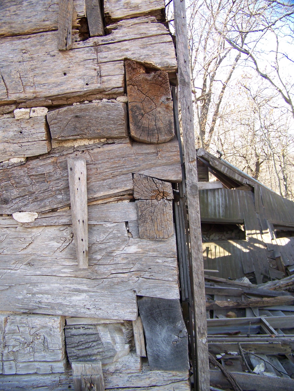 This 2014 view of the Hensel cabin shows the dove-tailing of the logs on the corners of the cabin.