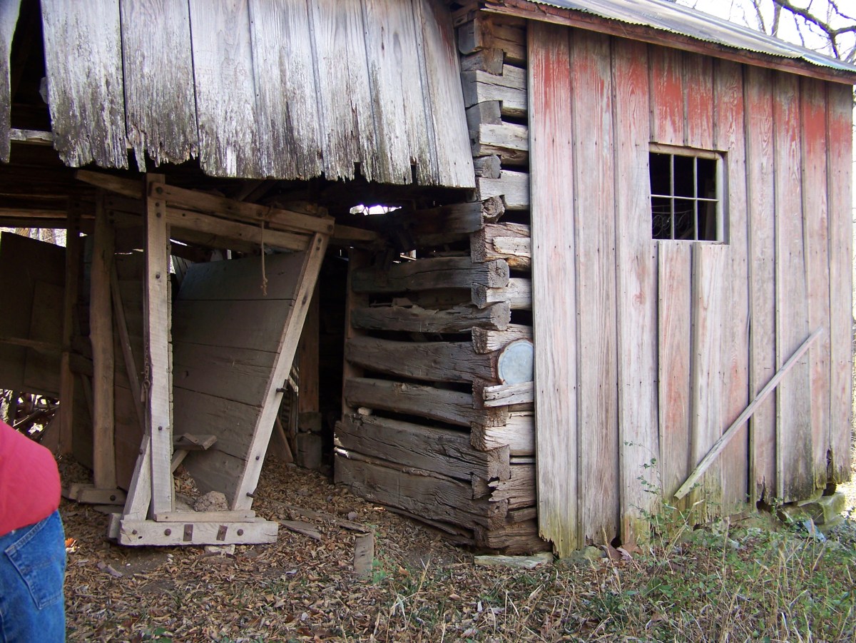 This log blacksmith shop on the Hensel homestead had been sided many years ago, making it resemble a conventional frame building.