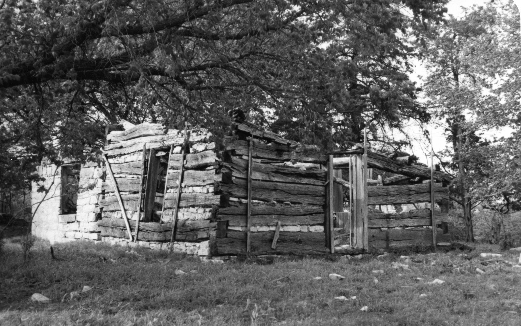 This log cabin and a stone addition added later were once the homestead of Gustav C. F. and Fredricka Hauer Schultz. The Schultz family immigrated to the United States in 1872 where they settled in this cabin three miles southwest of Volland, Kansas. Photo courtesy Julie and Cleo Schultz.