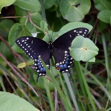 This Eastern Black Swallowtail stops on a honeysuckle vine while visiting the butterfly garden.