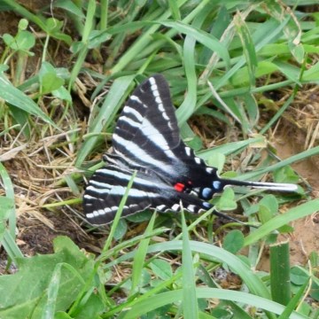 This Zebra Swallowtail, a butterfly whose caterpillar hosts on the leaves of the Paw Paw tree, was a late June visitor to the nectar garden.