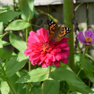 Zinnias are a favorite of the many Painted Lady butterflies that visit the garden in the summer months.