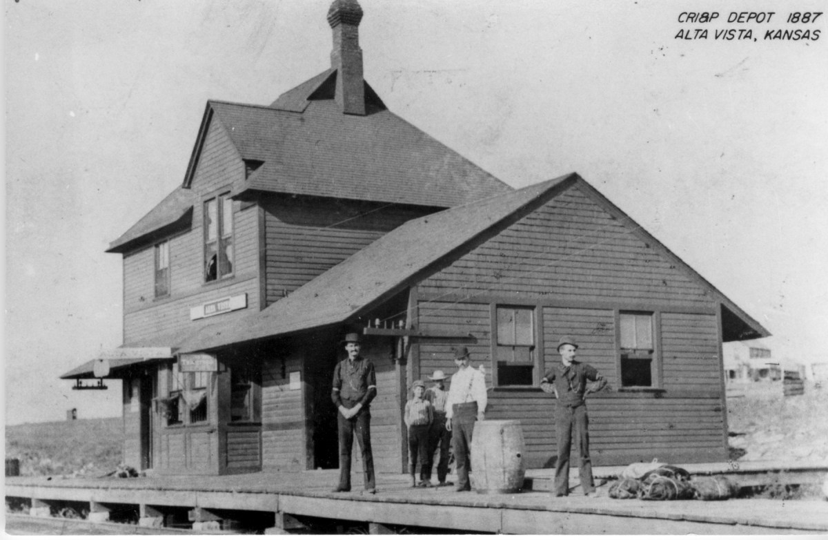 The first Rock Island depot in Alta Vista was constructed in 1887. Living quarters for the station agent was located on the second floor.