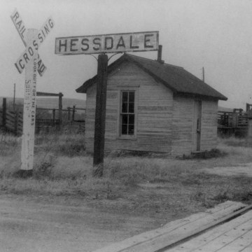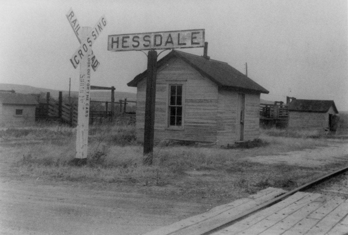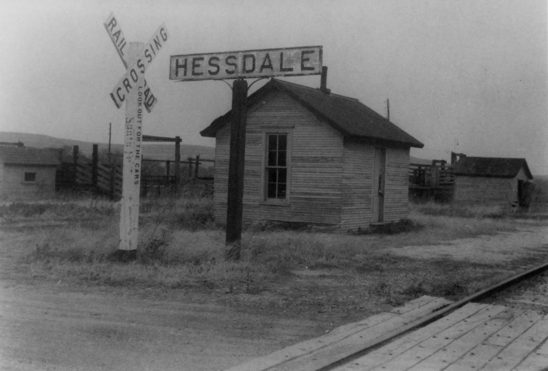 The ATSF depot and stockyards at Hessdale are seen in in this photo dated 1960.