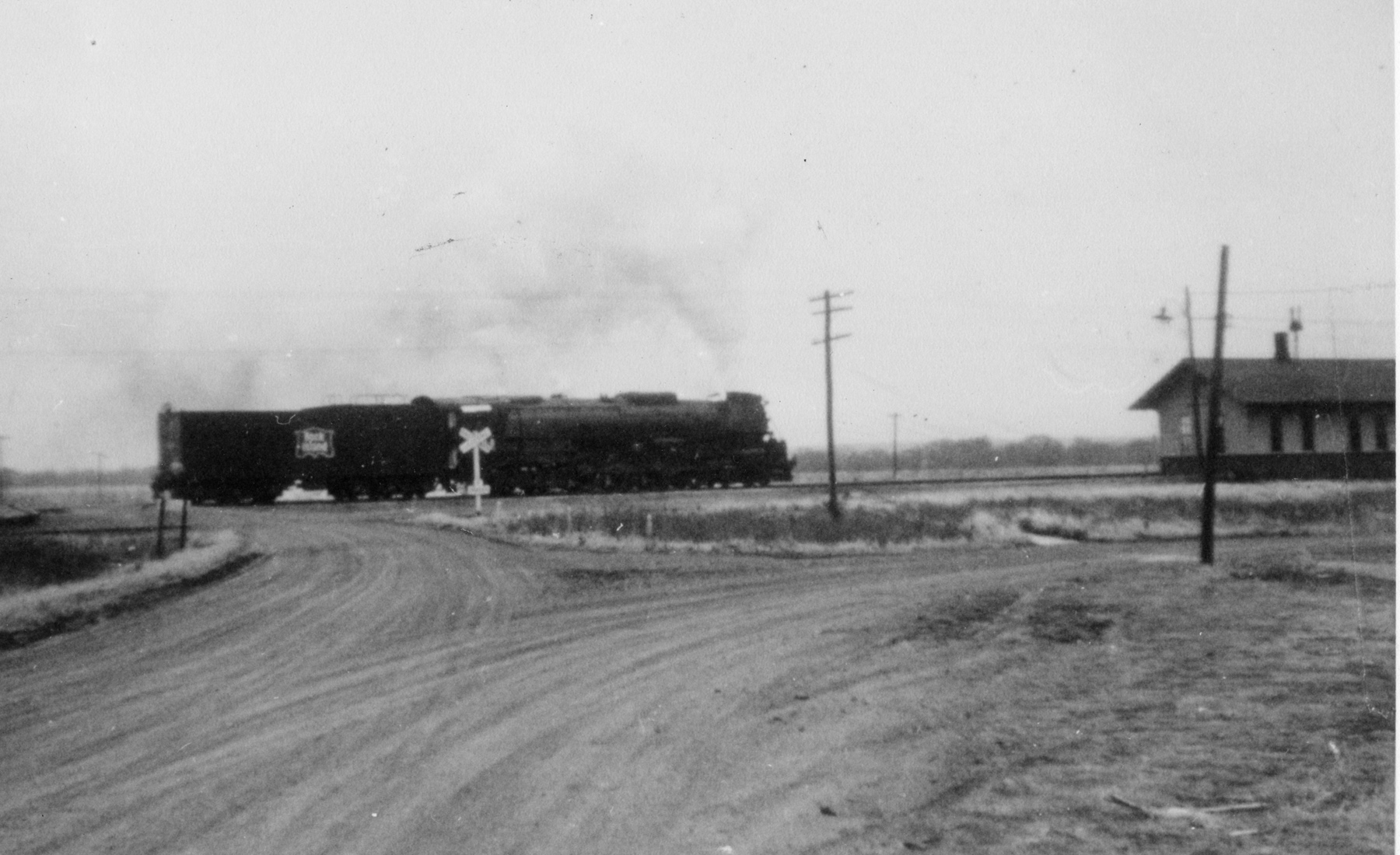 The Rock Island depot at Maple Hill, Kansas is visible at the far right of this 1960s view.