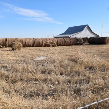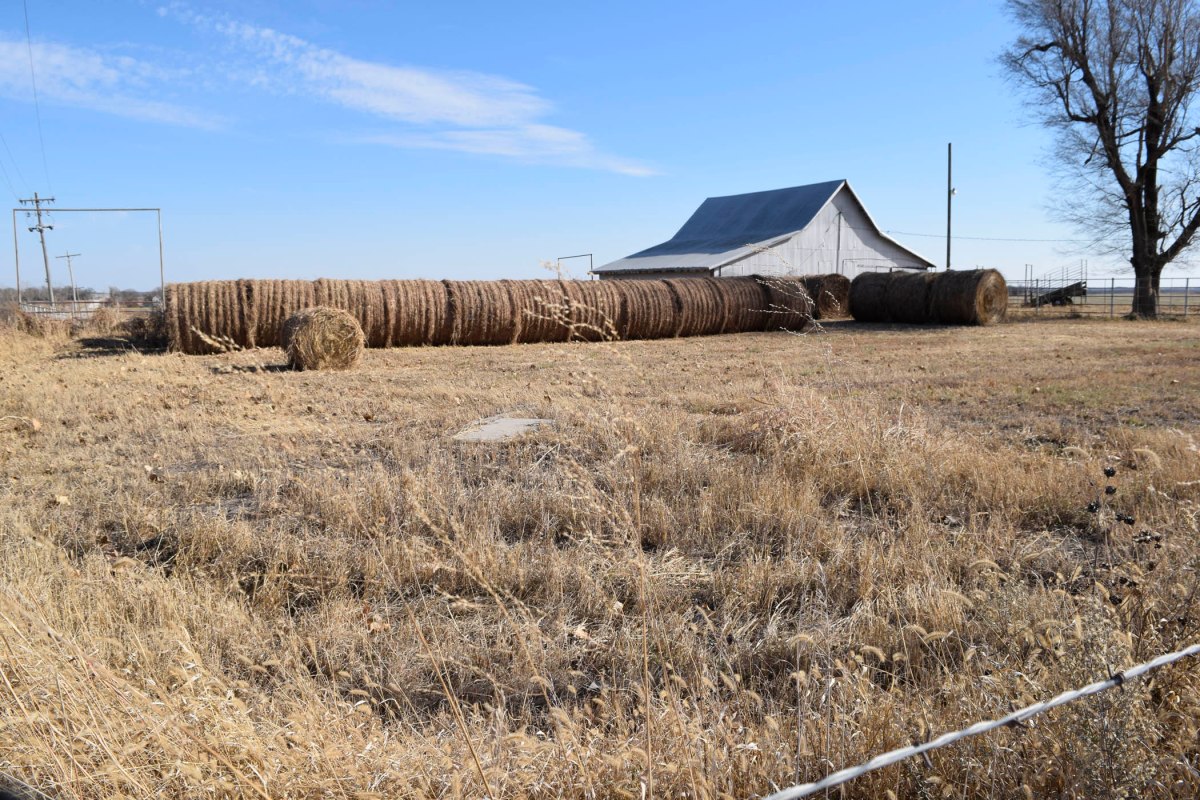 A small concrete slab, visible in the center of this photo, is all that remains of Mike Duff’s Standard Oil station located at “the corners” at Eskridge, Kansas.