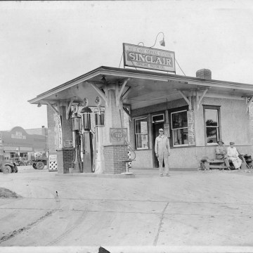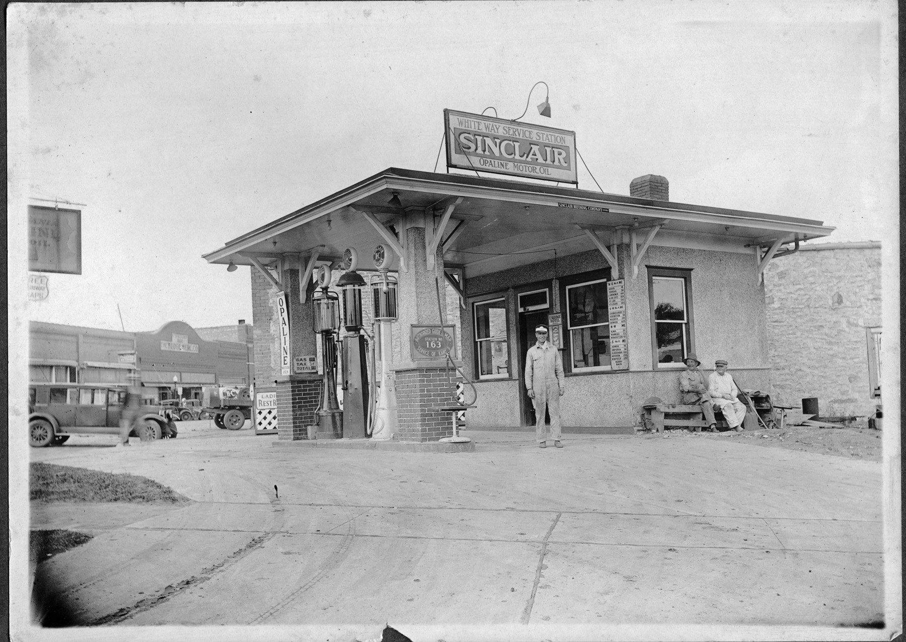 Cloice Meeker, standing in driveway, purchased this gas station from Harold Duff in early 1931. This “White Way Service Station” was located at 122 S. Main Street in Eskridge.