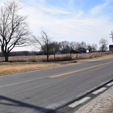 Van Newell’s gas station was located approximately where this driveway meets K-99 Highway, on the east edge of Eskridge, Kansas.