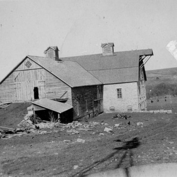 Notice in this 1921 view of the Schepp barn that there was an overhang for a hay carrier on the south roof peak.