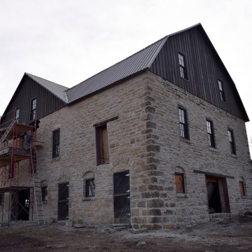 The stonework repair of the Schepp barn by Luke Koch and crew was nearing completion when this 2017 photo was taken.