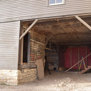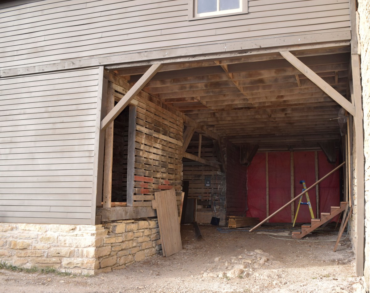 In this view of the south entryway to the granary, one can see what appears to be rocks in the center of the entryway. These are actually the rock roof pieces of an arched-ceiling underground cave designed for water storage.