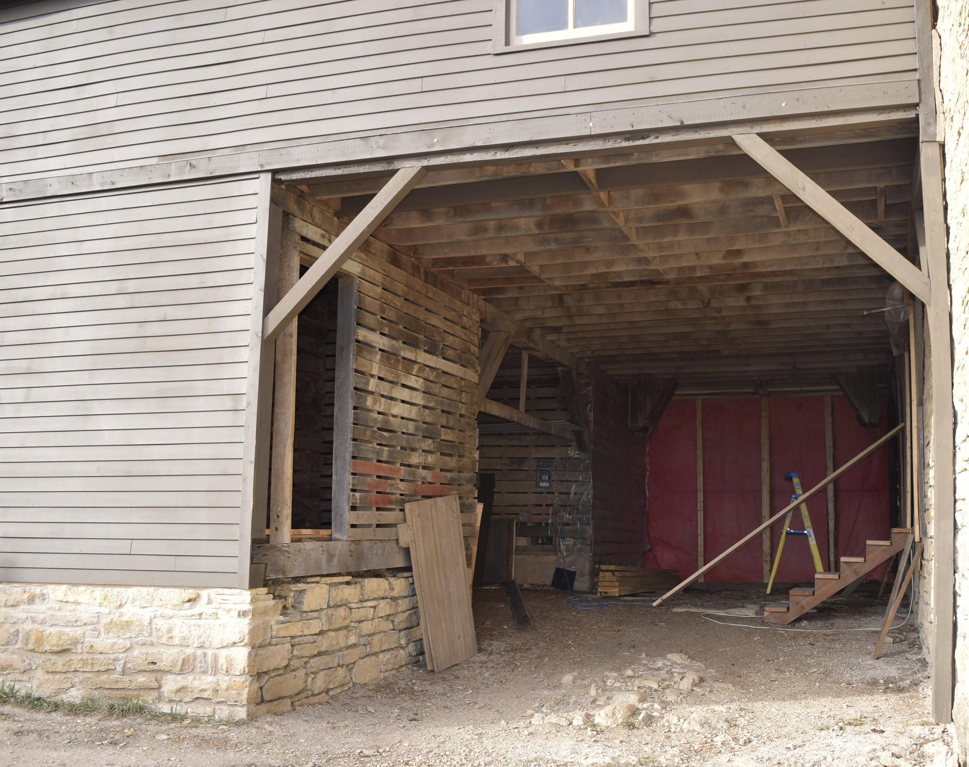 In this view of the south entryway to the granary, one can see what appears to be rocks in the center of the entryway. These are actually the rock roof pieces of an arched-ceiling underground cave designed for water storage.