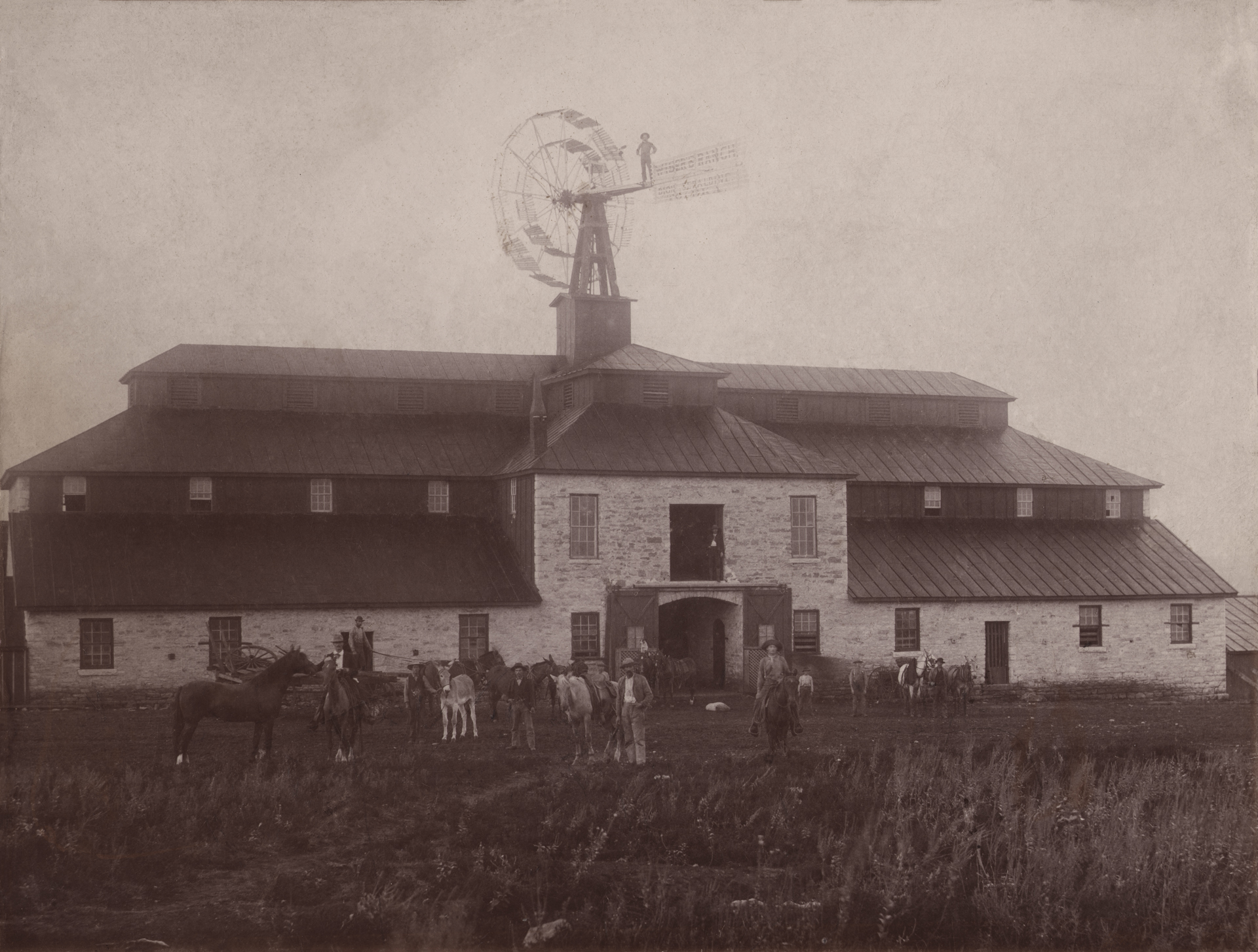 The Wiser barn, constructed in 1884, stood three-stories tall and sported a windmill protruding from the roof. (Image courtesy the Ellen Coffman Collection courtesy Michael Stubbs)