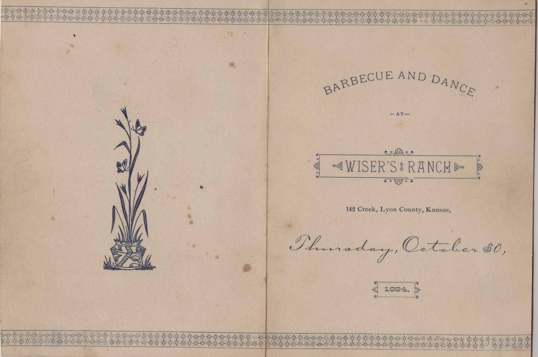 Harlow Wiser sent hundreds of engraved invitations to the opening of the new barn in 1884. (Image from the Ellen Coffman Collection courtesy Michael Stubbs)